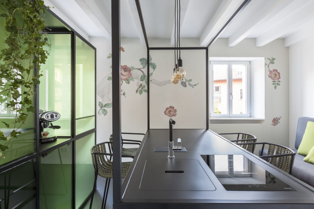 Consisting of three “mini lofts”, Casa Trentini is a residence dating back to the 1800s, located in the historic centre of Trento, two hundred metres from Piazza del Duomo, in which a new concept for interiors joins with contemporary art for a novel open-plan idea in which comfort, artistic development and aesthetics coexist in harmony.